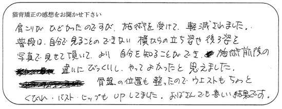 ずっと気にしていた猫背が改善されて、受けて良かったと思います。